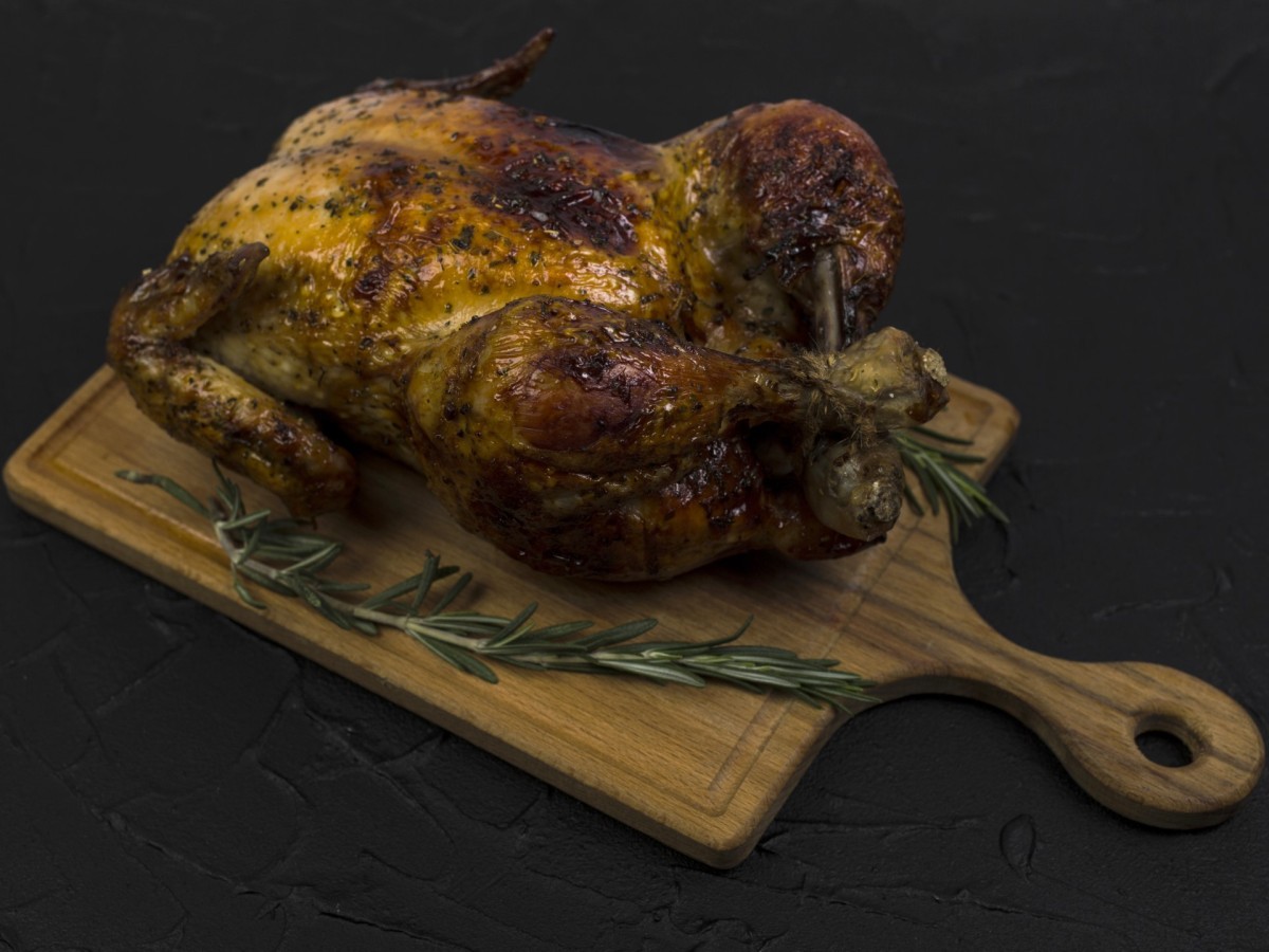 Ingredientes: Pollo entero, agua, aceite de girasol, sal, especias en proporción variable (pimienta, pimentón, romero, nuez moscada, mejorana), limón y aromas.